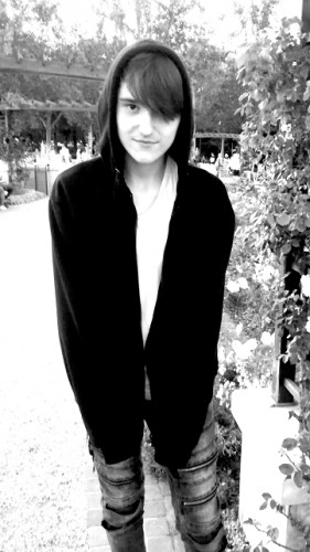 He is 182-185 cm tall, slim; he has brown hair. He was wearing a pair of black Converse shoes, a white T-shirt, and a black hoodie.